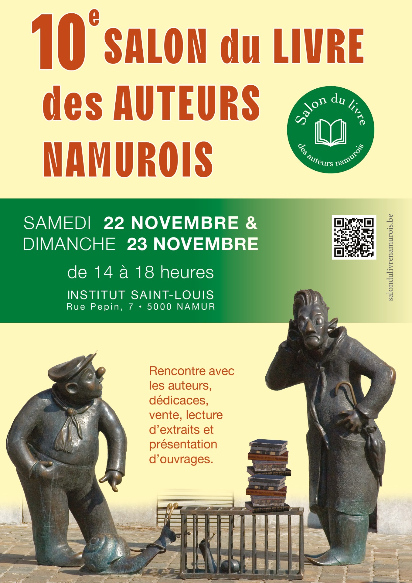 Créé en décembre 2014 à Malonne pour mettre en lumière les auteurs namurois, le Salon du livre a d'abord eu lieu dans divers lieux de Malonne. Depuis 2023, il est installé au centre de Namur, à l'Institut Saint-Louis, afin d'être plus accessible. L'événement rassemble une grande diversité d'auteurs régionaux et de genres (romans, BD, poésie, histoire locale, etc.). J'y serai une fois encore ces 22 et 23 novembre 2025. (14 à 18h)